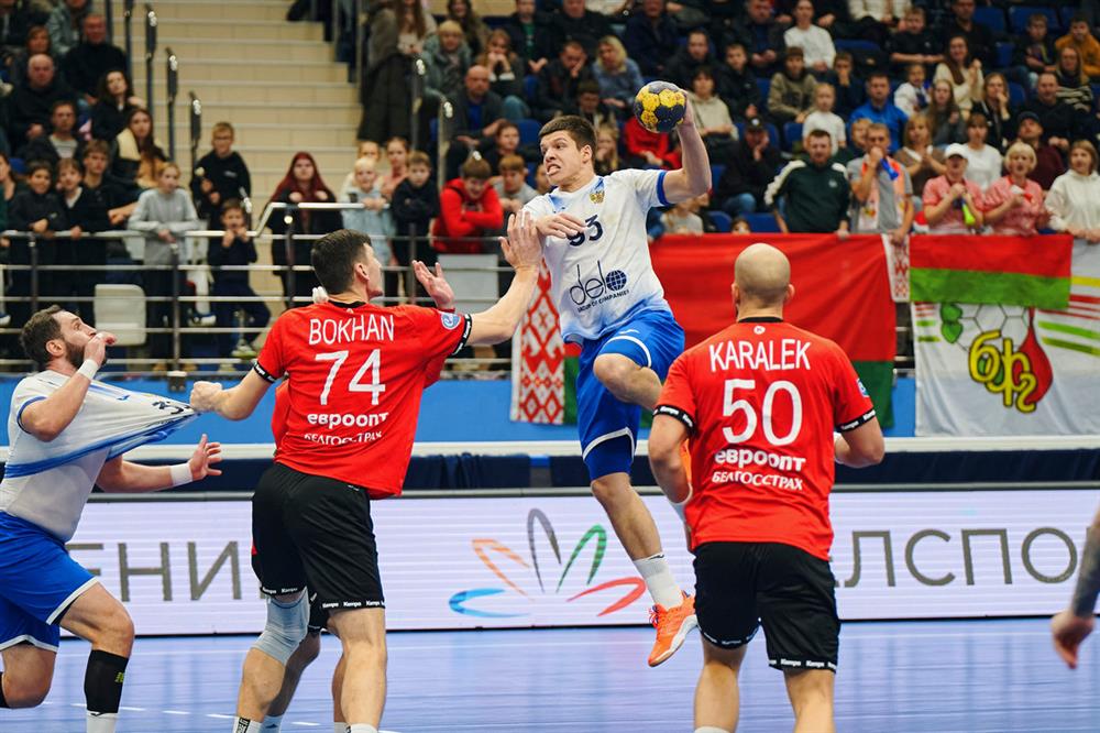 Уже по ходу первого тайма хозяева оторвались на шесть мячей — в защите противостоять Артему Корольку, Игорю Белявскому и другим у россиян тоже получалось не всегда. К перерыву преимущество сборной Беларуси составило пять голов — 16:11.