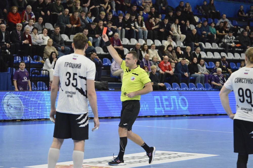 «Пермские медведи» вовсю использовали глубину состава и высокий темп. Разница продолжала расти в пользу уральцев, несколько раз вплотную подобравшись к двузначной отметке. Тотальному преимуществу команды Бузмакова даже не помешала ещё одна красная карточка – третье удаление Данила Мерца привело к досрочному окончанию игрового времени.