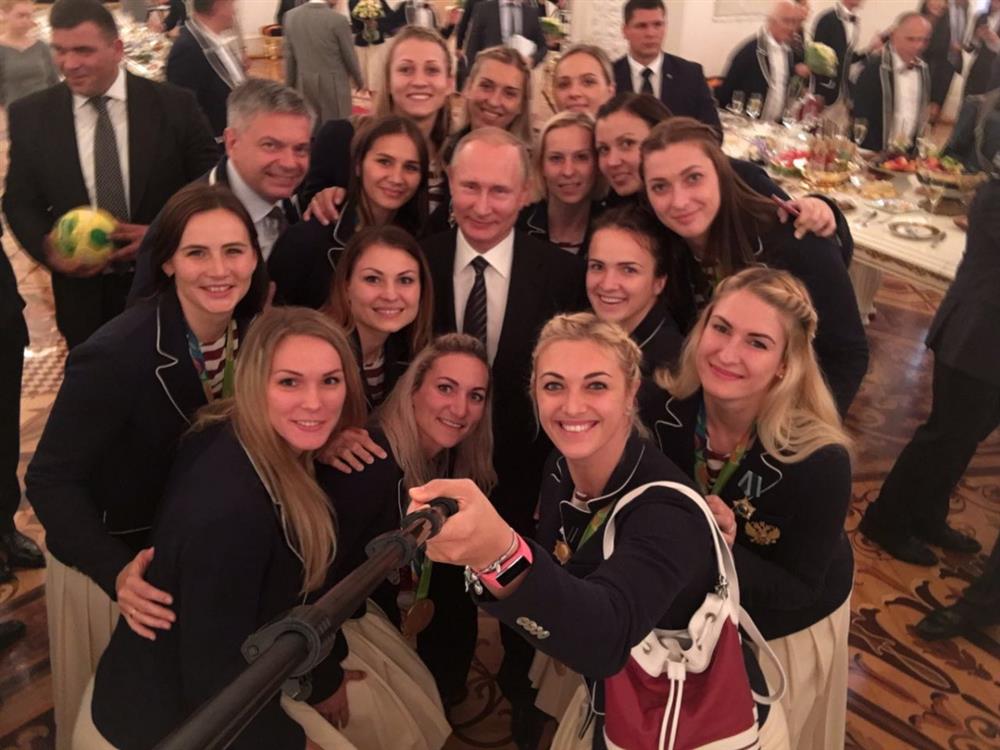 А вот после Игр, да, случилась та история. Помню, как уже после вручения орденов Владимир Владимирович подошел к нам, поприветствовал главу ФГР Сергея Николаевича Шишкарёва, пообщался с нами, даже знал, кто у нас левши и какой в гандболе мяч! Очень приятно было слышать такое от президента. И потом я попросила сфотографироваться, он нам не отказал. Недавно вот снова выставила этот снимок в соцсетях.