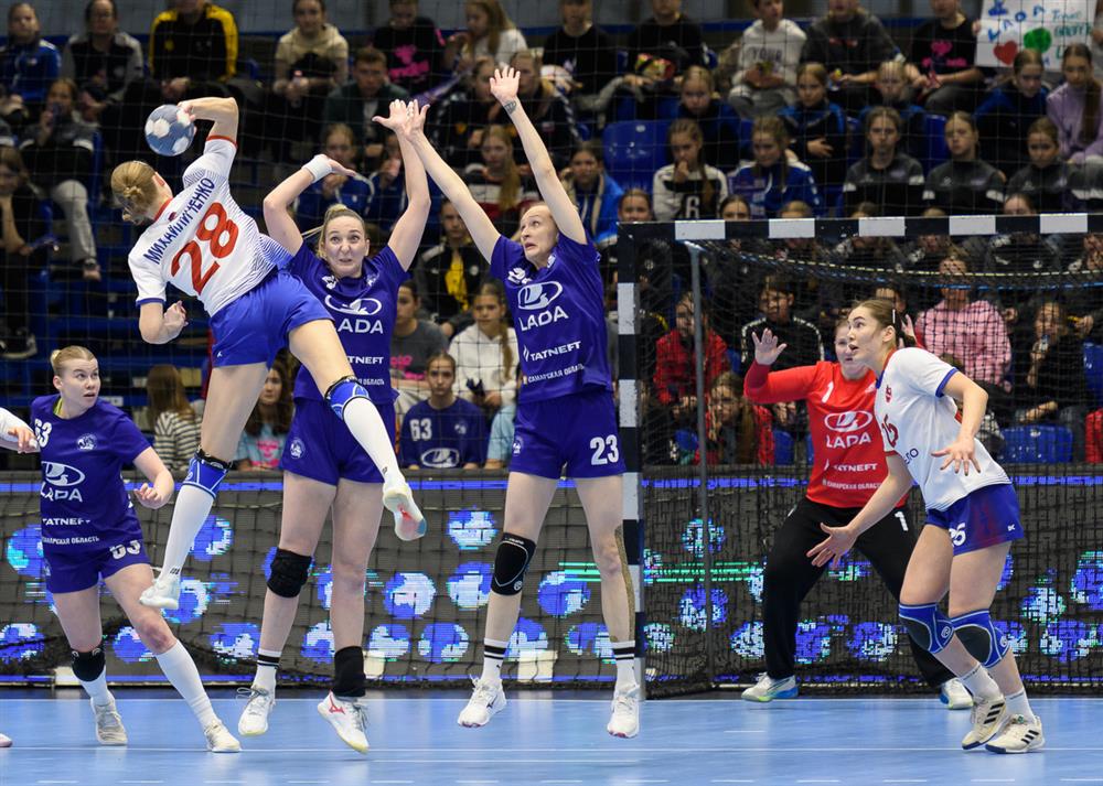На старте поединка волжанки грешили ошибками и позволили соперницам добыть задел в четыре мяча. Однако в течение последующих минут хозяйки площадки нащупали свою игру и пустились в погоню, сократив отставание до минимума к середине тайма. В составе ЦСКА свое первое появление в текущем розыгрыше плей-офф OLIMPBET Суперлиги совершила Елена Михайличенко. В первой половине встречи левый полусредний бросала без промаха, добыв для команды три гола. А в итоге стала лучшим бомбардиром поединка с 7 заброшенными мячами.